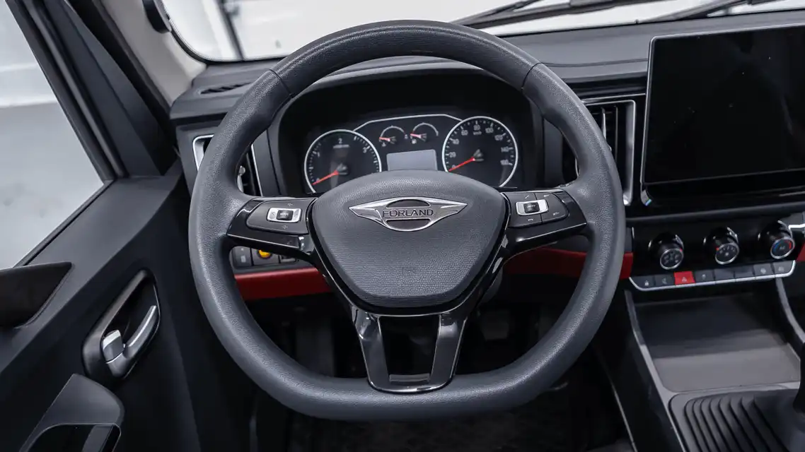 FORLAND 3 представлен в 3х версиях колесной базы: 3000 мм, 3360 мм, 3800 мм. Имеет обтекаемую форму кабины, светодиодные фары и зеркала заднего вида с подогревом. Рама из высокопрочной легированной стали обеспечивает прочность и долговечность конструкции, а мощный двигатель с высоким крутящим моментом гарантирует отличную производительность и экономичность.