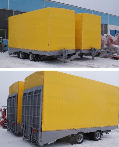Подвеска: Пневматическая, зависимая, с изменением высоты погрузки. Погрузочная высота 750-860 мм. Оси : Оси Gronax. Тормозная система: ТEBS WABCO . Электрооборудование : Задние фонари, подсветка номера.Колёса и шины: Ошиновка двухскатная. 235/75R17,5. Запасное колесо.Рама, платформа: Сварная конструкция из двутавра (низколегированная сталь); настилплатформы – сталь риф. 3,2.Борта: Стальные, из оцинкованного профиля, высота 400мм.Трап (аппарель): Настил из пуклеванной стали 3 мм. Подъём трапа - гидравлический, с приводом от гидростанции.Аутригер: Три. (2 задних +опорная нога JOST CD500)Буксирное устройство: Петля, диаметр 50 мм (евро), Диапазон регулировки (по высоте) 850-950 мм.Тент: ЖЕЛТЫЙ, верх белый (полупрозрачный). Электрооборудование: 24В, однопроводное, стоп-сигналы, габаритные фонари, указателиповорота, освещение номерного знака.Цвет прицепа: СЕРЫЙ. Максимальная скорость прицепа: 90 км/час (при номинальной нагрузке).