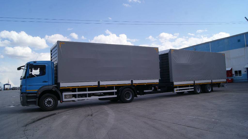 Тент монтируется на специальном каркасе, высота которого зависит от конкретной модификации. По желанию заказчика могут меняться и большинство других параметров. Самый предпочтительный вариант – высокий шторно-бортовой полуприцеп. Он оказывается более вместительным, повышается сохранность перевозимого груза.